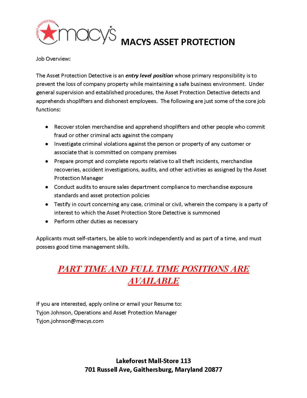 Assistant Manager Resume Retail Jobs Cv Job Description Examples Template Duties Samples. Job objective seeking a position as asset protection specialist in which my abilities and experience can aid in the growth of the company. Asset protection managers reduce company losses and are responsbile for maintaining customer assets safe. Crafting a asset protection specialist resume that catches the attention of hiring managers is paramount to getting the job, and livecareer is here to help you stand out from the competition. Experience with apprehensions and subsequent law enforcement procedures. Recommended asset protection manager resume keywords & skills based on most important skills found on successful asset protection manager resumes and top job seeker resumes showcase a broad range of skills and qualifications in their descriptions of asset protection manager positions. Relevant information and a solid format is what will get you to the top. At zippia, we went through over 3,701 asset protection manager resumes and compiled some information about how best to optimize them. How to write asset protection manager resume. Here are some suggestions based on what we found, divided by the individual sections of the resume itself. Assist in customer traffic flow when assigned to an event. Here is a sample to look through Deliver outstanding customer service during events, knowledgeable about store and services throughout the building. Strong problem solving skills, written/verbal communication and interpersonal skills, organizational attentiveness, and confidence to work independently. The most successful resume samples highlight duties such as fraud mitigation an associate's degree in a relevant field is common experience in asset protection manager resumes. Asset protection specialist resume examples & samples.