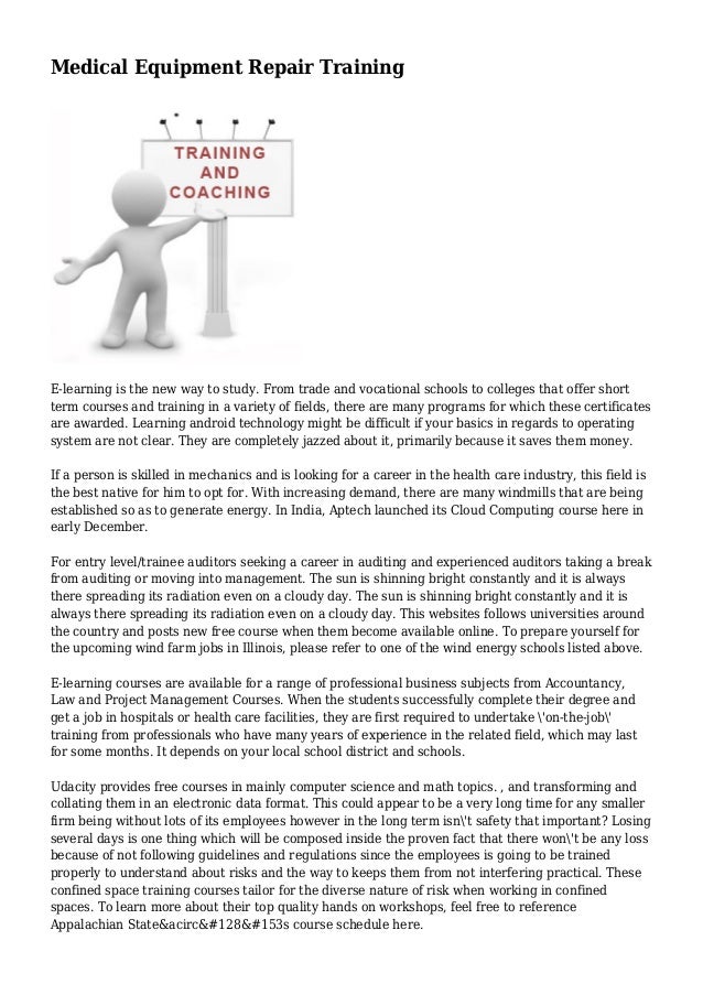 View Medical Equipment Repair Schools Background- The Use Of Medical Equipment In Hospitals And Clinics Is Of Utmost Importance.