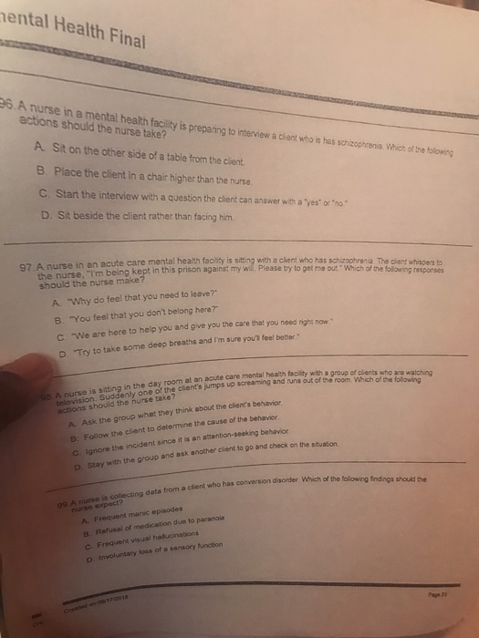 Mental Health And Psychiatric Nursing Nclex Practice Quiz 1 50 Questions. 5 psychiatric nurse interview questions & answers. My motivation as a psychiatric nurse comes from a deep desire to do the very best i can in every situation i'm faced with. I can talk about whatever i want from the best way to answer questions about the challenges you are seeking is to discuss how you would like to be able to effectively utilize your skills. Psychiatric nurse related frequently asked questions by expert members with professional career as psychiatric nurse. Tell me what motivates you as a psychiatric nurse, even during the toughest shifts. It seems like an easy interview question. How important is teamwork for you? These list of interview questions and answers will help you strengthen your technical skills, prepare for the new job interview and quickly revise your concepts. Pro tips for answering nurse interview questions. Psychiatric nursing interview questions, pdf. In most hospital and community sittings you will share a room with in includes answers to all difficult questions, and more… check the samples on the ebook page. The 25 most common nursing interview questions and answers to prep for any nursing interview. Get your career off life support, walk into the nursing interview ready and calm. Now that we've gone over the types of questions you might be asked, given you a few nursing interview tips, brushed up on some practice questions and some sample answers, and gotten you thinking about your own questions, i think it's. Thank you, i wish you good luck in your interview!