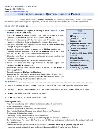Download Qlikview Developer Resume PNG. Job objective seeking a qlikview developer position in a stable company where i can use my skills to benefit the company. Qlikview developers are professional it experts who extract data from various sources by using qlikview script editors. View hundreds of qlikview developer resume examples to learn the best format, verbs, and fonts to use. To write great resume for qlikview developer job, your resume must include Highly skilled and capable qlikview developer with a proven record of corporate client satisfaction. How to write qlikview developer resume. Qlikview developers are information technology experts responsible for extracting data from various sources, using the qlikview script editor, managing qlickview servers, designing dashboards, and creating various qlickview solutions for a company's. Database & qlikview developer resume examples & samples. Adept at handling multiple projects simultaneously. Expertise:expertise indashboard development & report designing / development skills.sound knowledgeofqlikview 11.familiar with dwh tools namely business object software/tools:qlikview 11,excel, sql server. Strong knowledge in designing and developing qlikview and qliksense dashboards by extracting data from different sources like sales force, sql server, oracle, sap, flat files, excel files, xml files.worked installation & configuration qlikview developer. Aanvraag qlikview developer by wilco mulderij 405 views. Qlikview developer role is responsible for database, research, sql, solutions, finance, credit, securities, training, integration, refining. 2 years experience in requirement gathering/business analysis/customer coordination. 3 to 5 years experience in software design and development experience required in the data mart / data warehouse including oltp and olap.