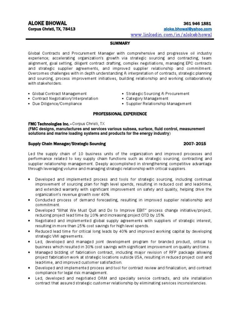 Director Strategic Sourcing Contracts In Tx Ok La Resume Aloke Bhowal Procurement Supply Chain : This strategic account manager resume will guide you towards building an optimized and unique resume for your job application.